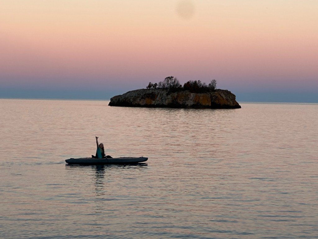 After a day of adventure, we returned to the campground to relax by the lake. I was lucky enough to meet someone who had a kayak and let me borrow it! I paddled to the island by the beach and saw the lake from within. The water is clear and I could see about 30 feet down. The bottom is covered by huge rocks about 5 feet wide. The massive stones surprised me and were something I would not have known about without the chance to kayak. If you have kayaks, especially blow-up ones, I recommend spending your evening exploring the coast. It opens your eyes to the beauty of the shoreline.