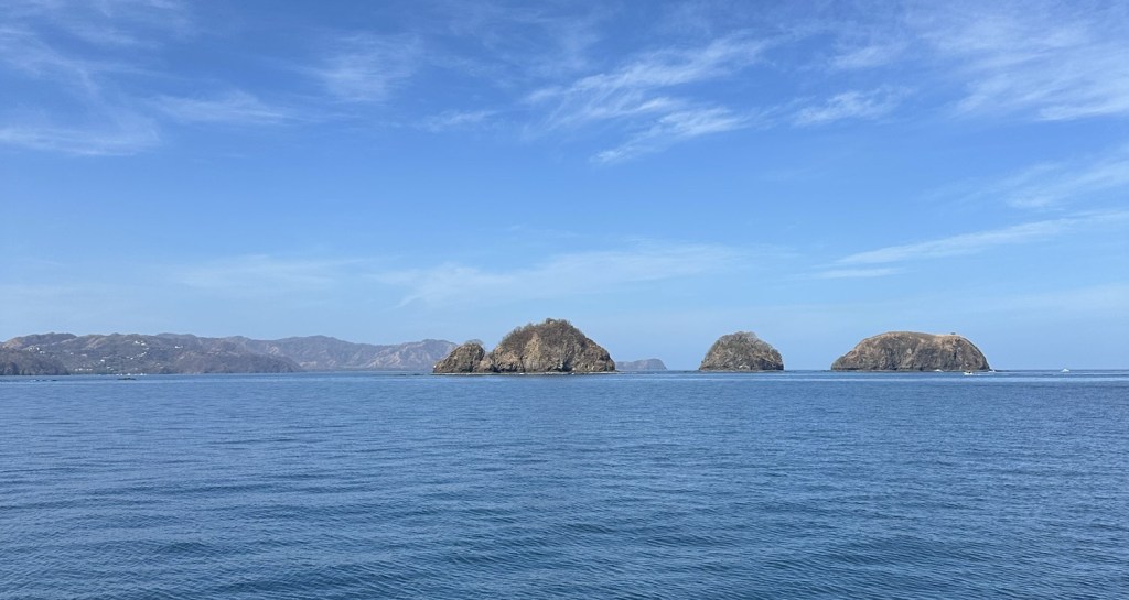 Costa Rica is home to unique wildlife and gorgeous blue waters, making it a perfect spot for snorkeling. With coasts on both sides of the country, you can snorkel in either the Caribbean or Atlantic waters or both! On our group tour, we took a catamaran from Playa Panama in Guanacaste and anchored out along the coast. First, we sailed past islands and expansive hotels, ultimately stopping to snorkel in a shallow sandy area with a small reef. Many tours provide snorkels for you, but I still recommend packing your own if you have them. The thought of sharing the mouthpiece grosses me out, but the shared equipment is an option! Lather on plenty of reef-safe sunblock before jumping in! I enjoyed snorkeling for a while, and eventually became tired of kicking around and opted to take off my snorkel gear and swim back to the boat. During my return swim, I was stung by a small jellyfish around the top of my foot, leaving pink and white bubbles on my skin that burned, especially in the salt water. Once I reached the boat, I learned that about half of our fellow tour members had faced a similar fate. That day, I learned that vinegar is what should be sprayed on jellyfish stings. After that, I was done with swimming and enjoyed some lovely guacamole and pineapple on our cruise back, while taking many pictures of the beautiful coastline.